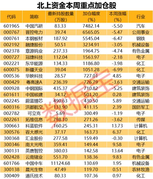 北上资金加仓的背后是对经济复苏的信心以及对潜力股的深入分析。连续周买入表明资金对市场的长期看好,可能促使股价上涨。